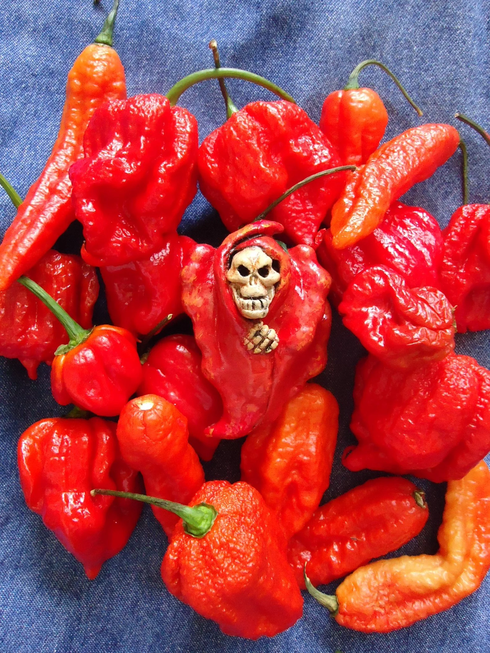 On a recent weekend, another of our members (maybe he’s a chemistry/ecology teacher and volleyball coach, and maybe he isn’t), brought something new to the process, something he had created, a crimson, warty, freak-spawn hybrid pepper that he named “Yaquina Bay Reaper.”